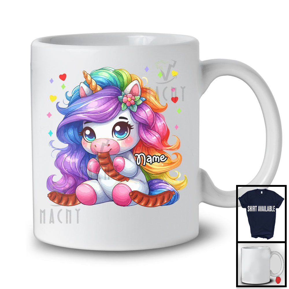 Personalized Unicorn Eating Sausage; Adorable Custom Name Boys Girls Sausage Lover T-Shirt
