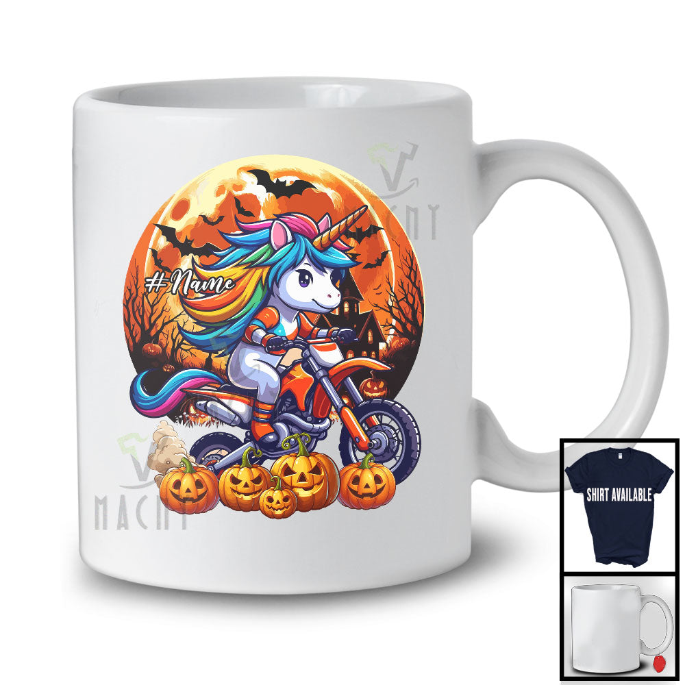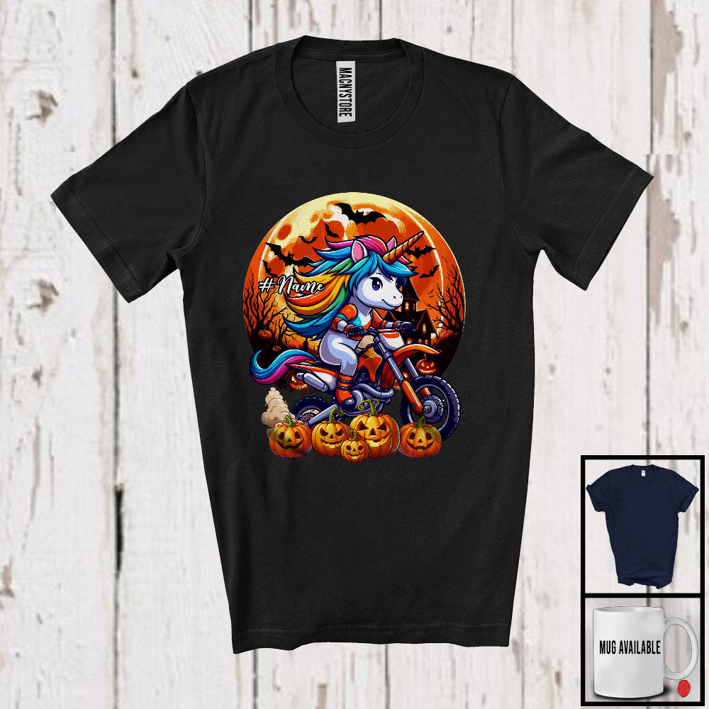 Personalized Unicorn Riding Dirt Bike; Creepy Halloween Moon Custom Name Biker T-Shirt