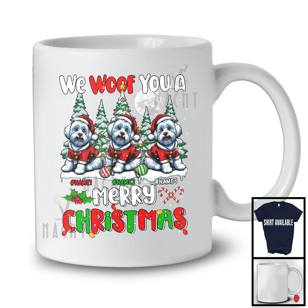 Personalized We Woof You A Merry Christmas; Lovely Three Santa Malteses; X-mas Tree T-Shirt