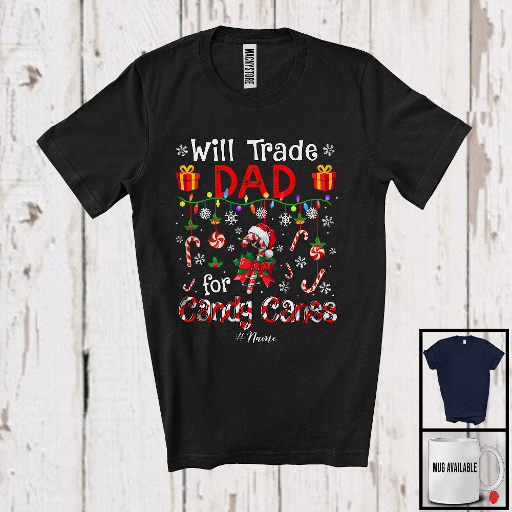 new MacnyStore - Personalized Will Trade Dad For Candy Canes; Merry Christmas Lights Custom Name Family T-Shirt – Macnystore