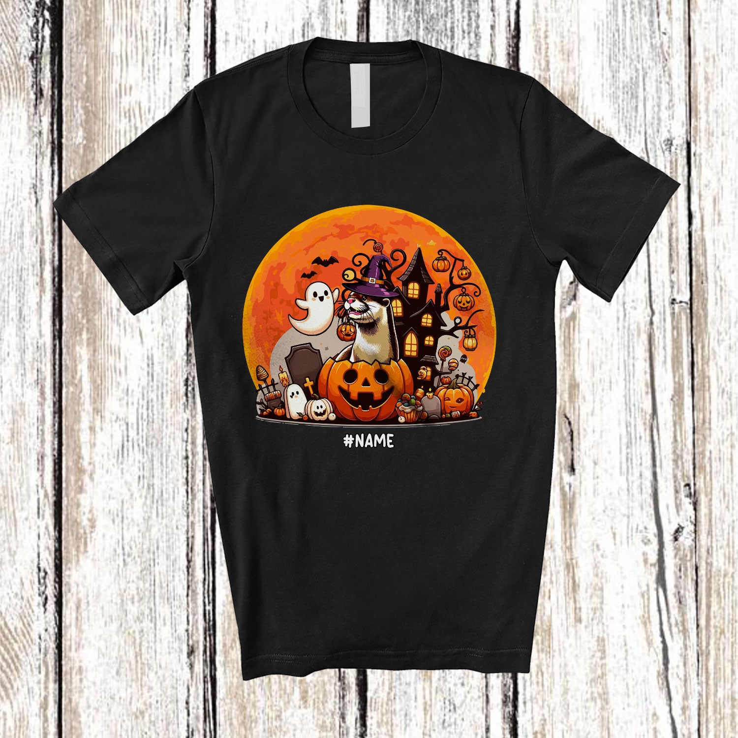 Personalized Witch Otter Inside Pumpkin; Creepy Halloween Custom Name Sea Animal Moon T-Shirt