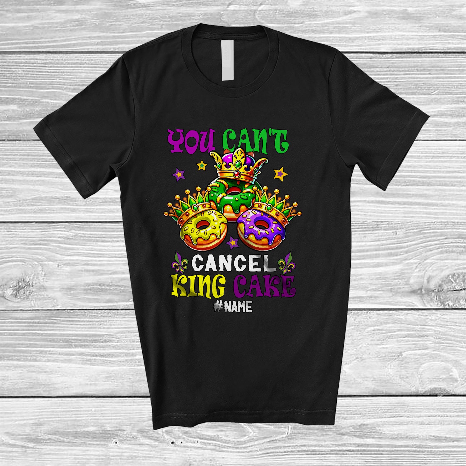 Personalized You Can't Cancel King Cake; Amazing Mardi Gras Custom Name Carnival Parades T-Shirt. This cotton t-shirt is a durable staple product with a classic fit. One of the most popular items, it has a relaxed style made for everyday and casual wear.