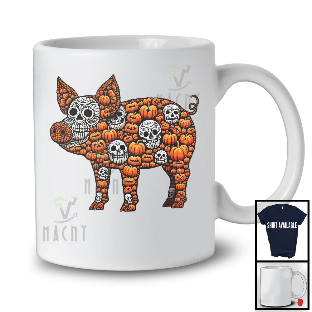 Pig Skull Pumpkin Shape; Awesome Halloween Costume Pig Lover; Farm Animal Farmer T-Shirt