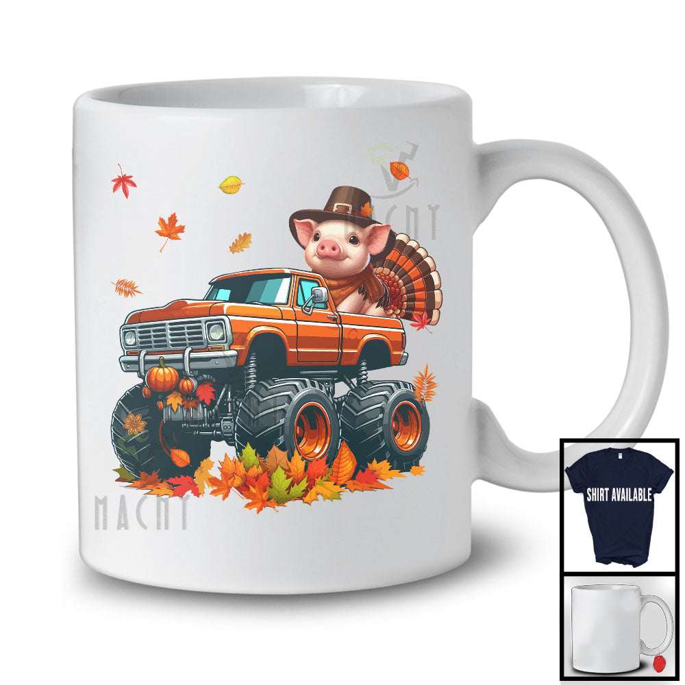 This Pig Turkey On Monster Truck; Humorous Thanksgiving Autumn Fall Leaves; Family T-Shirt is great idea gift for your family, friends in this birthday, christmas, mother's day, father's day, patrick's day or any holiday.