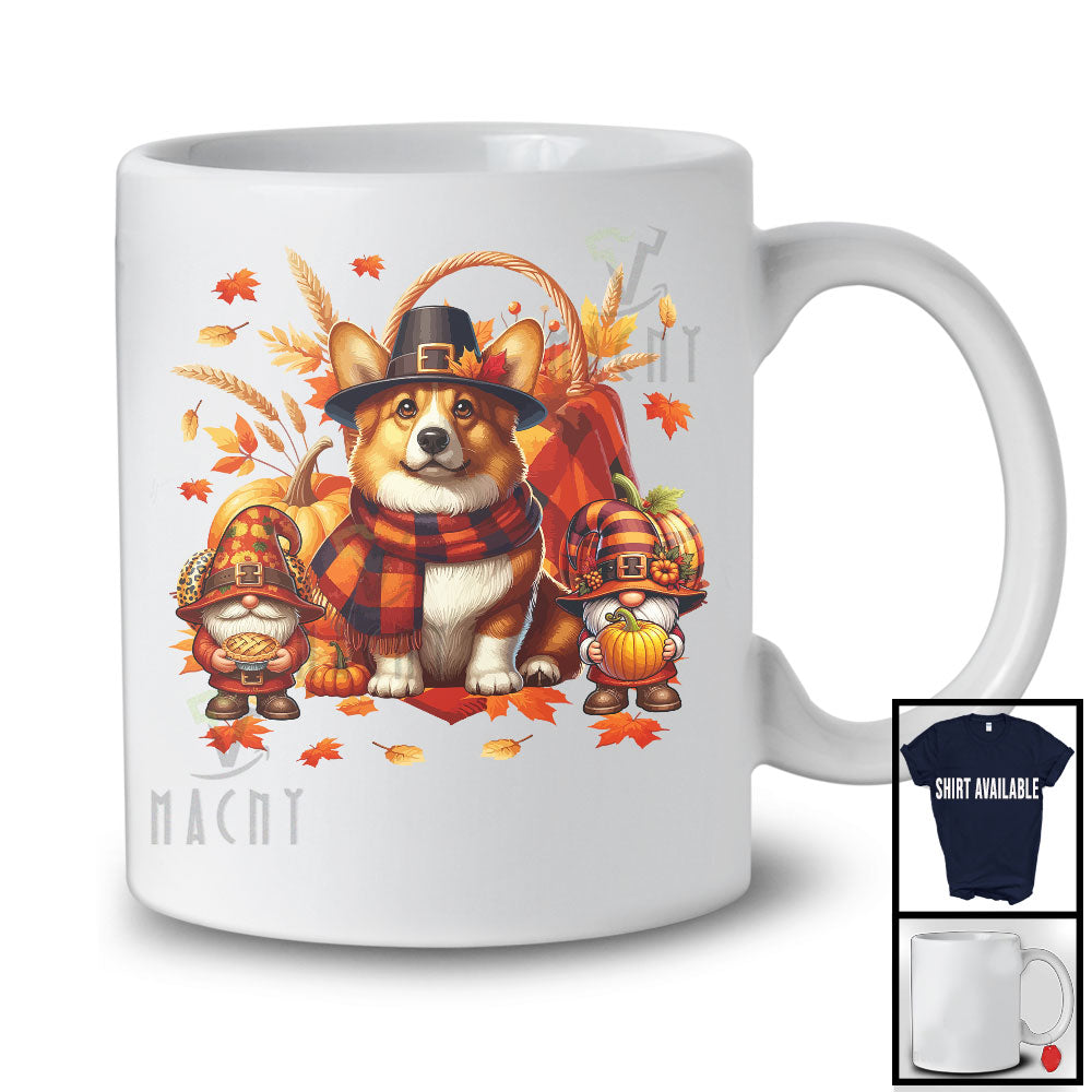 new MacnyStore - Pilgrim Corgi With Two Gnomes, Amazing Thanksgiving Fall Leaves, Plaid Pumpkins T-Shirt – Macnystore