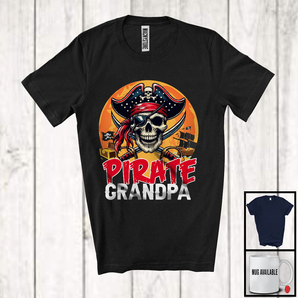 Pirate Grandpa, Amazing Halloween Costume Pirate Skull Lover, Moon Matching Family Group T-Shirt