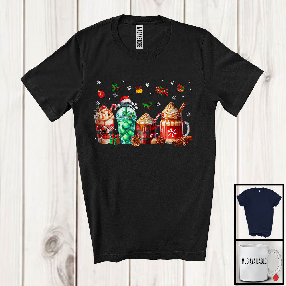 new MacnyStore - Plaid Coffee Snowing Around; Amazing Christmas Snowing Santa Coffee; X-mas Family Group T-Shirt – Macnystore