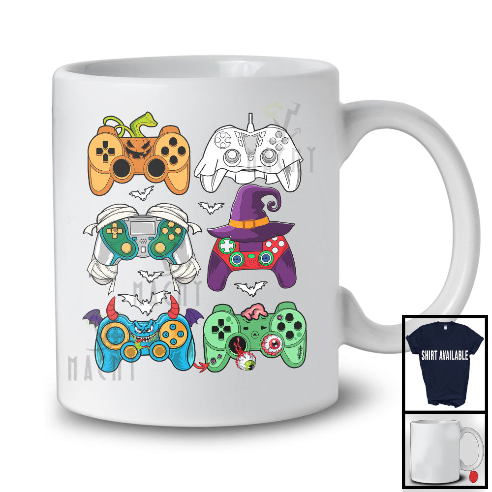 Pumpkin Zombie Mummy Gaming Controllers Collection; Creepy Halloween Costume Gamer Group T-Shirt. This cotton t-shirt is a durable staple product with a classic fit. One of the most popular items, it has a relaxed style made for everyday and casual wear.