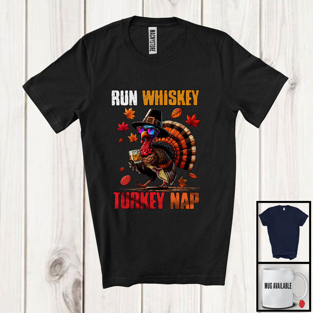 Run Whiskey Turkey Nap; Sarcastic Thanksgiving Turkey Sunglasses Whiskey; Drinking Drunker T-Shirt