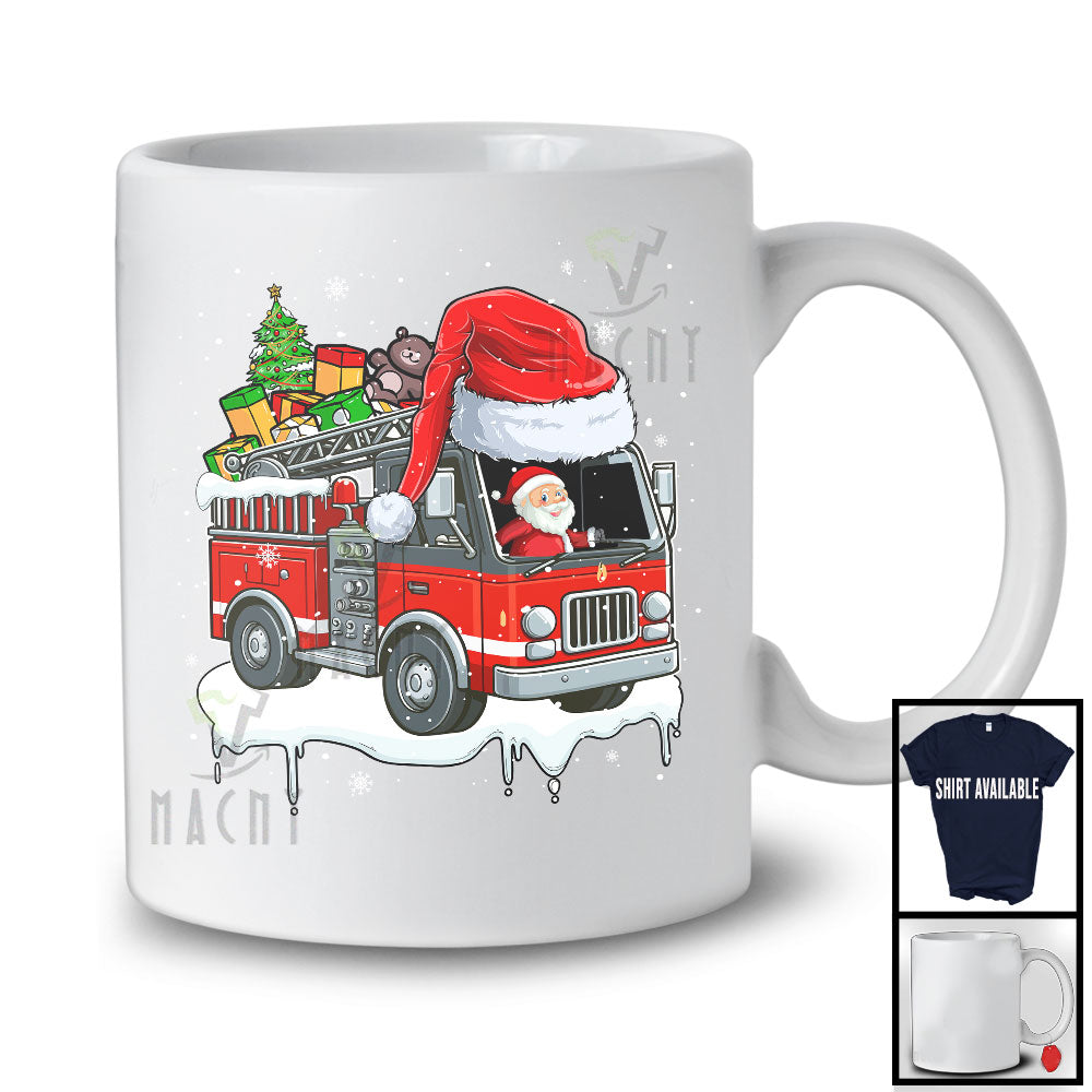 new MacnyStore - Santa Driving Fire Truck With X-mas Tree, Joyful Christmas Santa Snow Matching Group T-Shirt – Macnystore