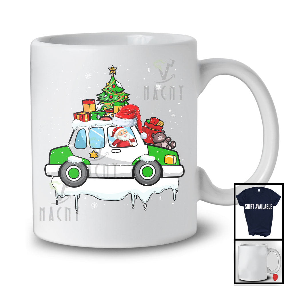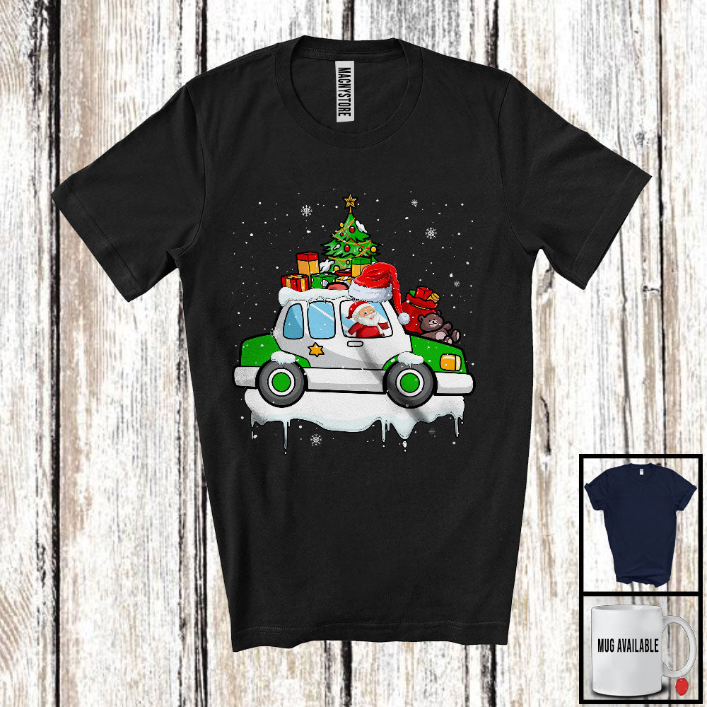 Santa Driving Police Car With X-mas Tree, Joyful Christmas Santa Snow Matching Group T-Shirt