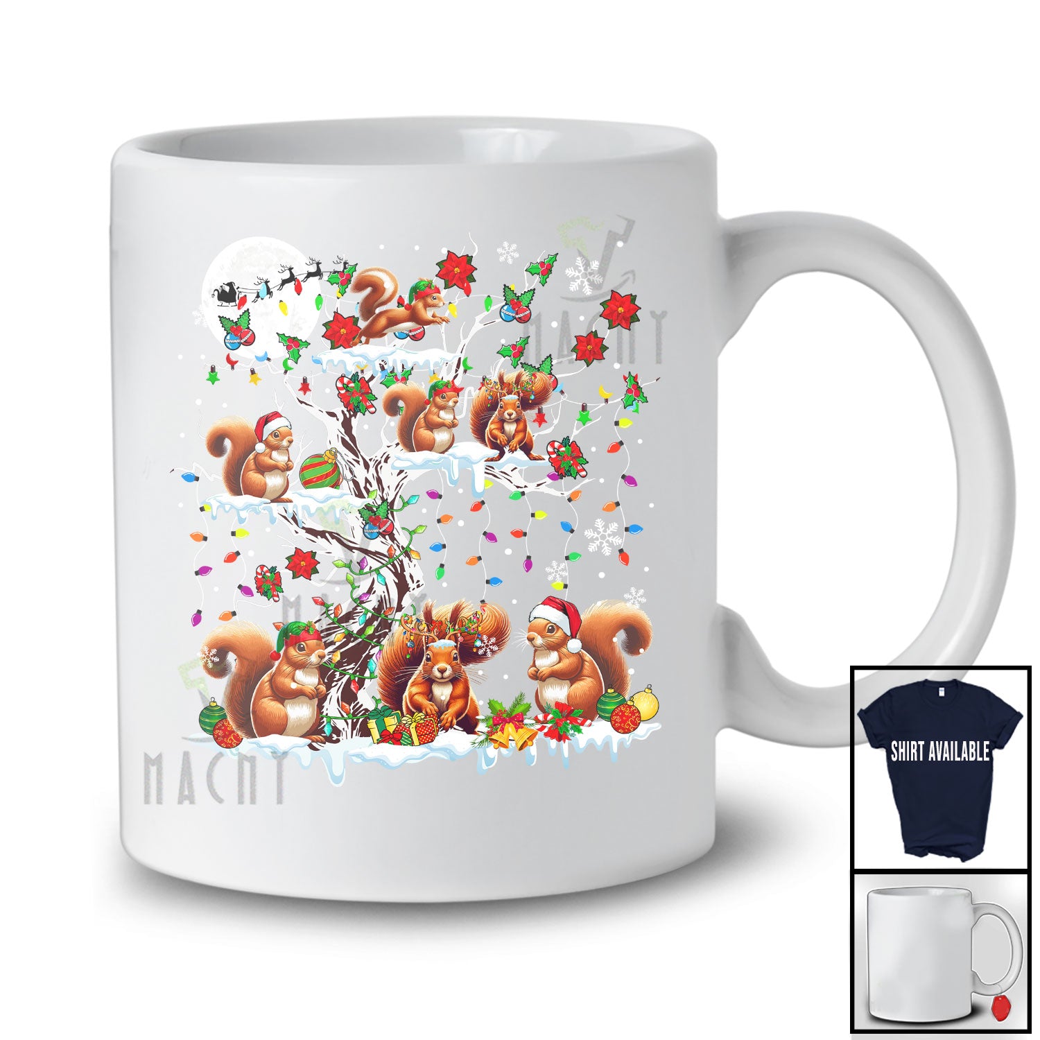 The Santa Elf Reindeer Squirrel On Christmas Tree; Amusing X-mas Lights Squirrel; Animal Lover T-Shirt destined to impress, and priced at only $12.95, for a limited time.