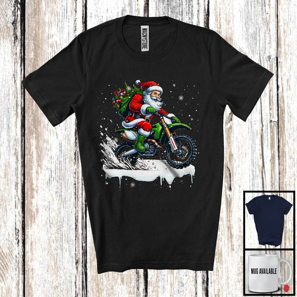 Santa Riding Dirt Bike With X-mas Tree, Joyful Christmas Santa Snow Matching Group T-Shirt