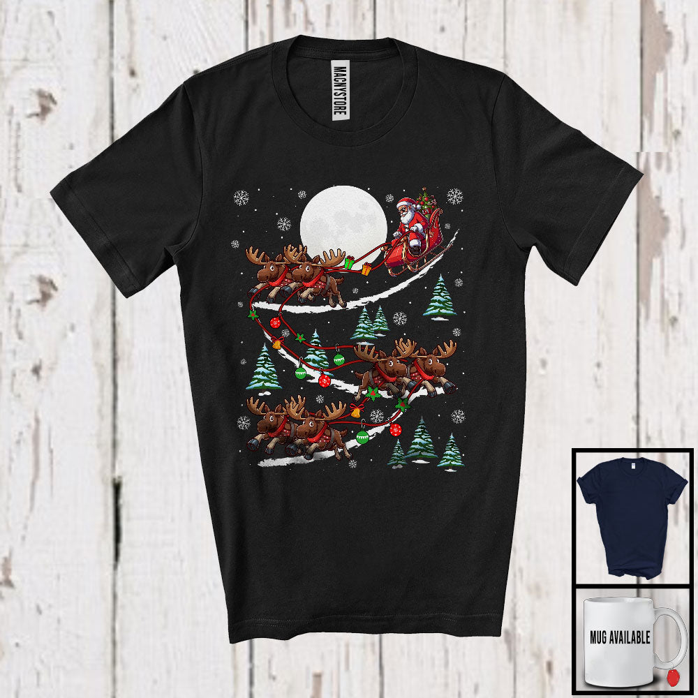 Santa Riding Moose Reindeer; Amazing Christmas Moon Tree Snowing Moose; Family Group T-Shirt
