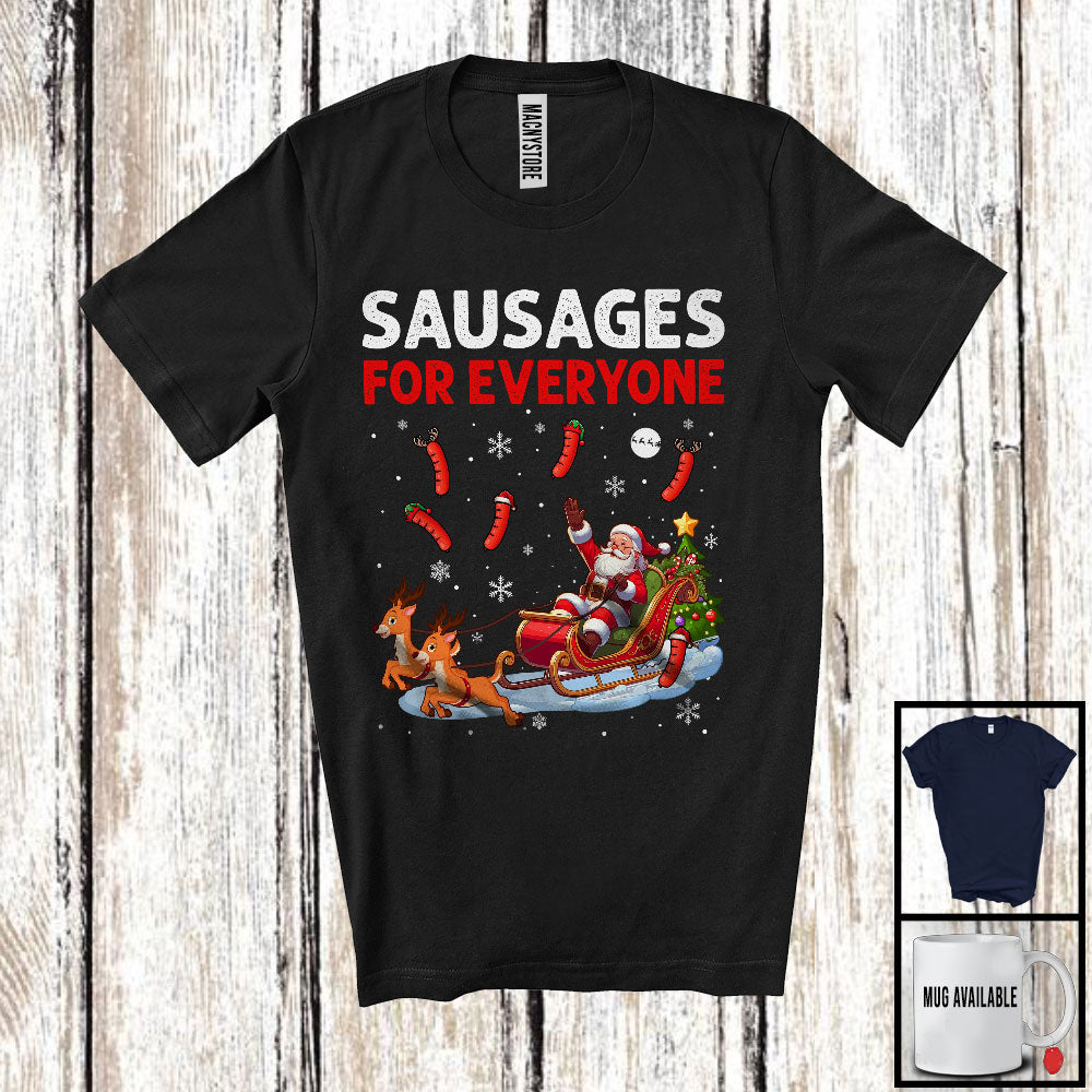 Sausages For Everyone; Amazing Christmas Santa Sleigh Sausage; X-mas Tree Matching Food Lover T-Shirt