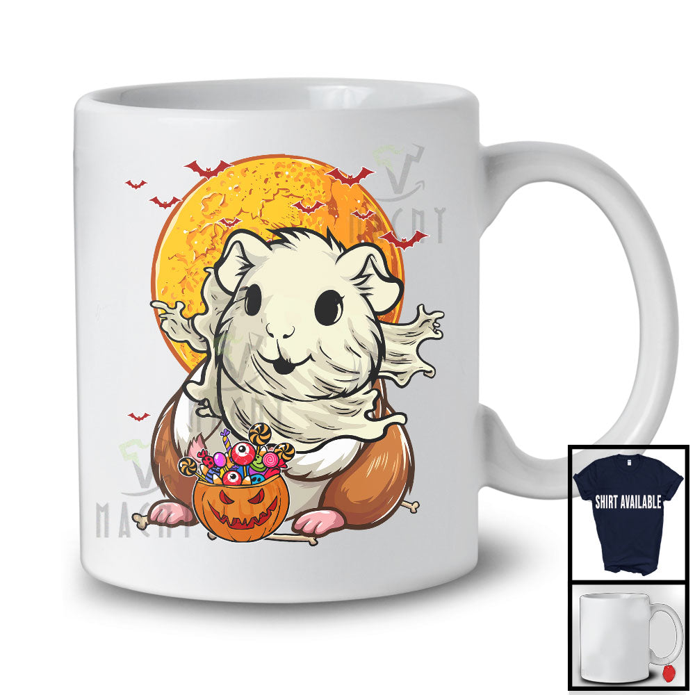 Scary Moon Guinea Pig Ghost With Carved Pumpkin Candy, Happy Halloween Guinea Pig Lover T-Shirt