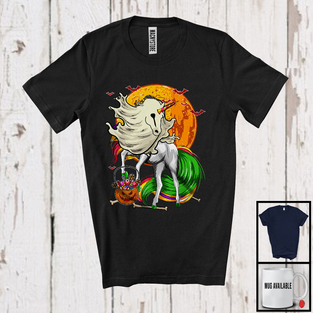 new MacnyStore - Scary Moon Unicorn Ghost With Carved Pumpkin Candy, Happy Halloween Unicorn Lover T-Shirt – Macnystore