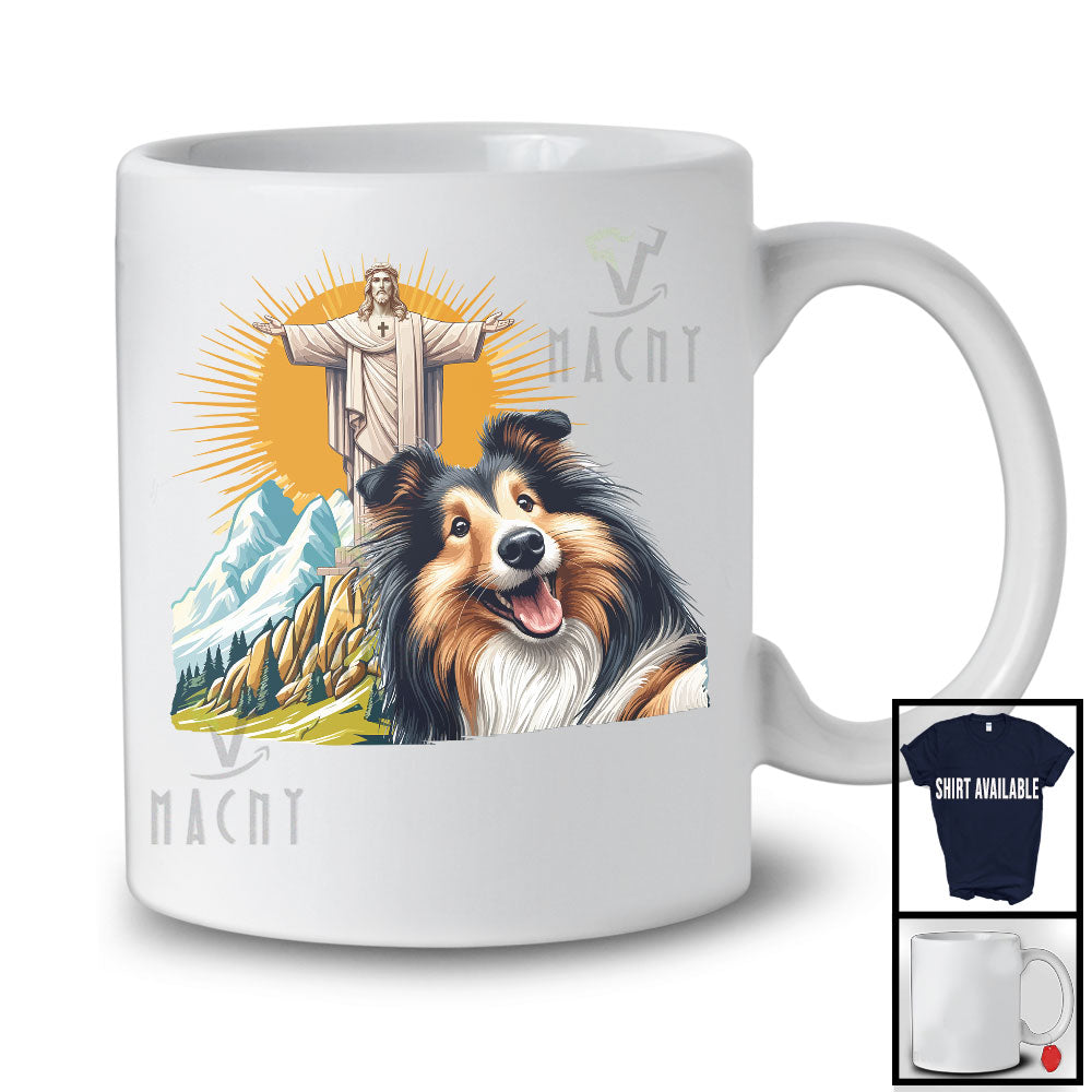 Life is too short to live without the Shetland Sheepdog Selfie With Jesus Statue; Lovely Shetland Sheepdog Owner; Family Group T-Shirt. Be happy. Be Content. Be Satisfied.