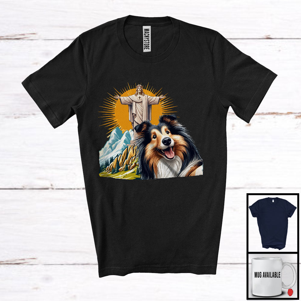 Shetland Sheepdog Selfie With Jesus Statue; Lovely Shetland Sheepdog Owner; Family Group T-Shirt