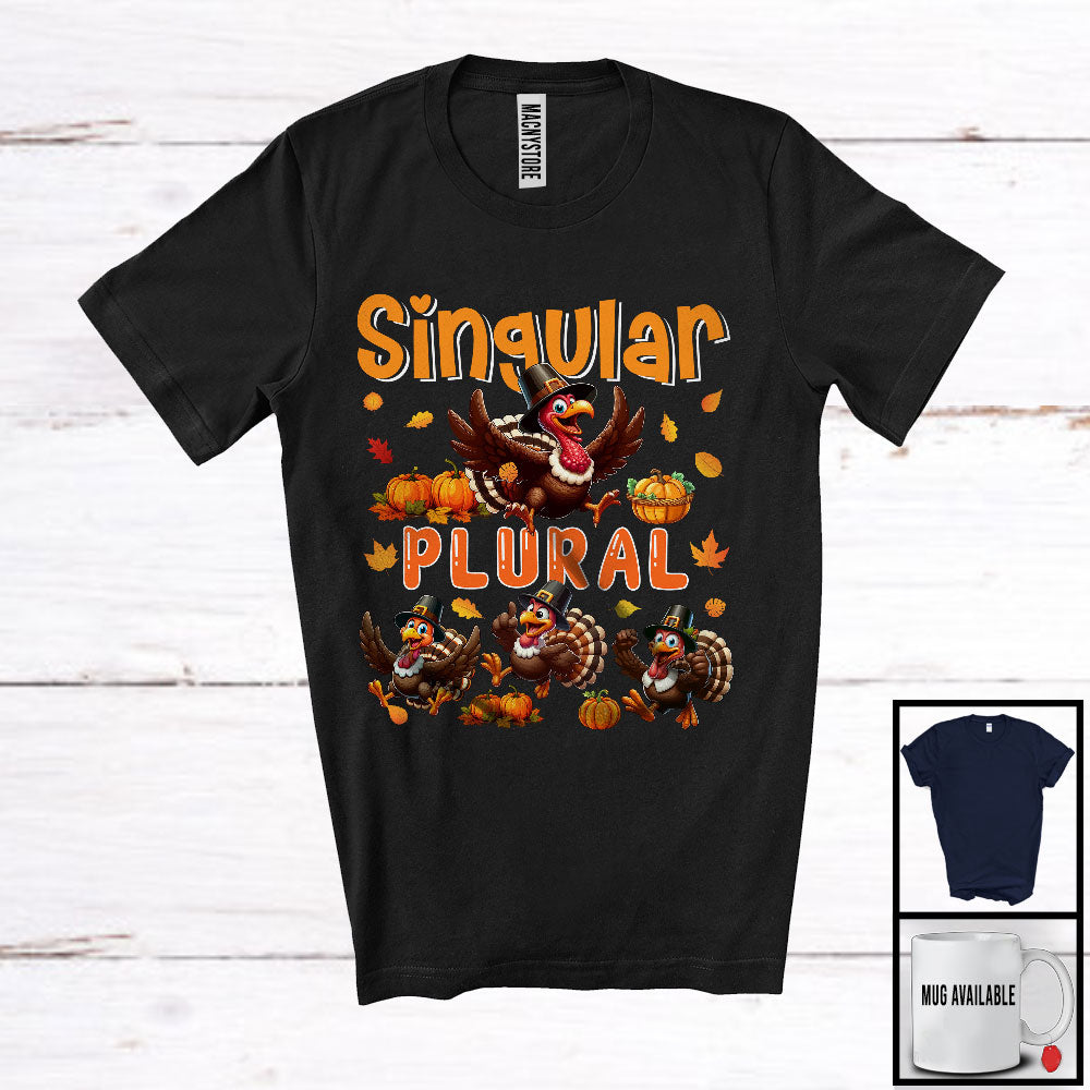 Singular Plural, Joyful Thanksgiving Fall Leaves Turkey, Grammar Teacher Lover Matching Group T-Shirt. This cotton t-shirt is a durable staple product with a classic fit. One of the most popular items, it has a relaxed style made for everyday and casual wear.
