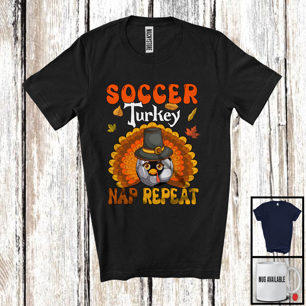 • Soccer Turkey Nap Repeat, Awesome Thanksgiving Fall Leaves Turkey, Sport Player Team T-Shirt. This cotton t-shirt is a durable staple product with a classic fit. One of the most popular items, it has a relaxed style made for everyday and casual wear.