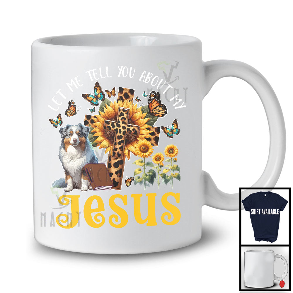 Tell You About My Jesus, Adorable Australian Shepherd Owner Lover, Leopard Sunflowers Cross Butterflies T-Shirt