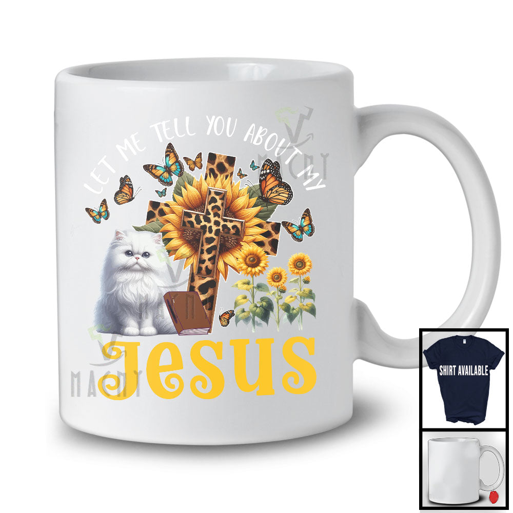 Tell You About My Jesus, Adorable Cat Owner Lover, Leopard Sunflowers Cross Butterflies T-Shirt