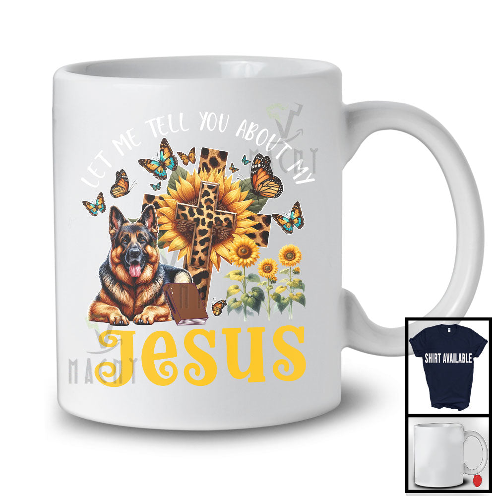 Tell You About My Jesus, Adorable German Shepherd Owner Lover, Leopard Sunflowers Cross Butterflies T-Shirt