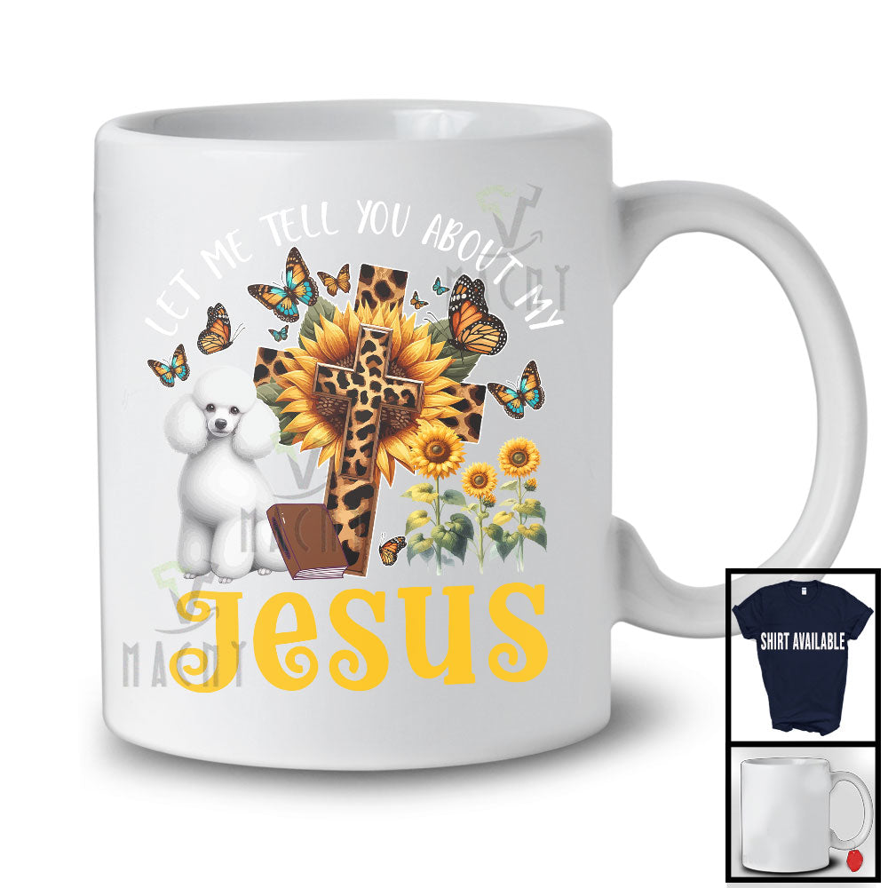 Tell You About My Jesus, Adorable Poodle Owner Lover, Leopard Sunflowers Cross Butterflies T-Shirt