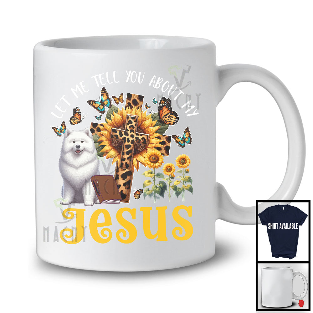 Tell You About My Jesus, Adorable Samoyed Owner Lover, Leopard Sunflowers Cross Butterflies T-Shirt. This cotton t-shirt is a durable staple product with a classic fit. One of the most popular items, it has a relaxed style made for everyday and casual wear.