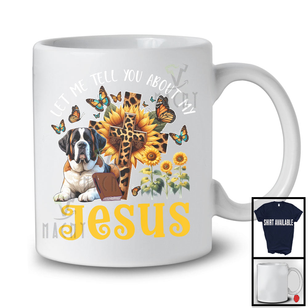 Tell You About My Jesus, Adorable St. Bernard Owner Lover, Leopard Sunflowers Cross Butterflies T-Shirt