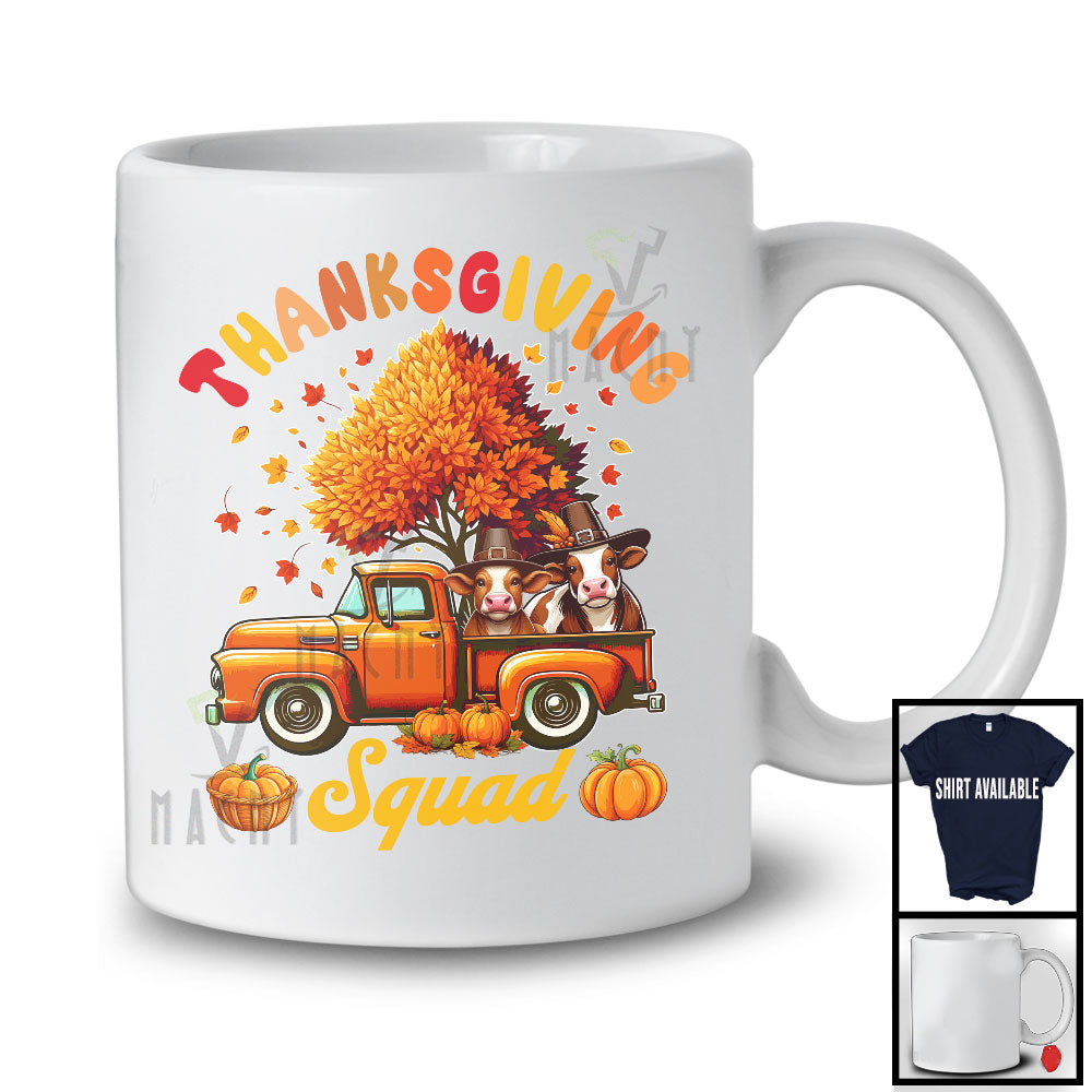 This Thanksgiving Squad; Lovely Cow On Pickup Truck Fall Autumn Tree; Farm Animal Farmer Lover T-Shirt is great idea gift for your family, friends in this birthday, christmas, mother's day, father's day, patrick's day or any holiday.