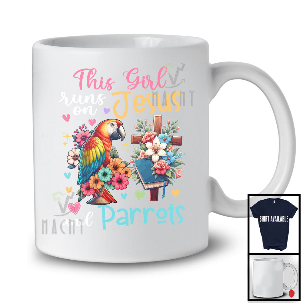 This Girl Runs On Jesus And Parrots, Adorable Flowers Matching Bird Lover, Family Group T-Shirt. This cotton t-shirt is a durable staple product with a classic fit. One of the most popular items, it has a relaxed style made for everyday and casual wear.