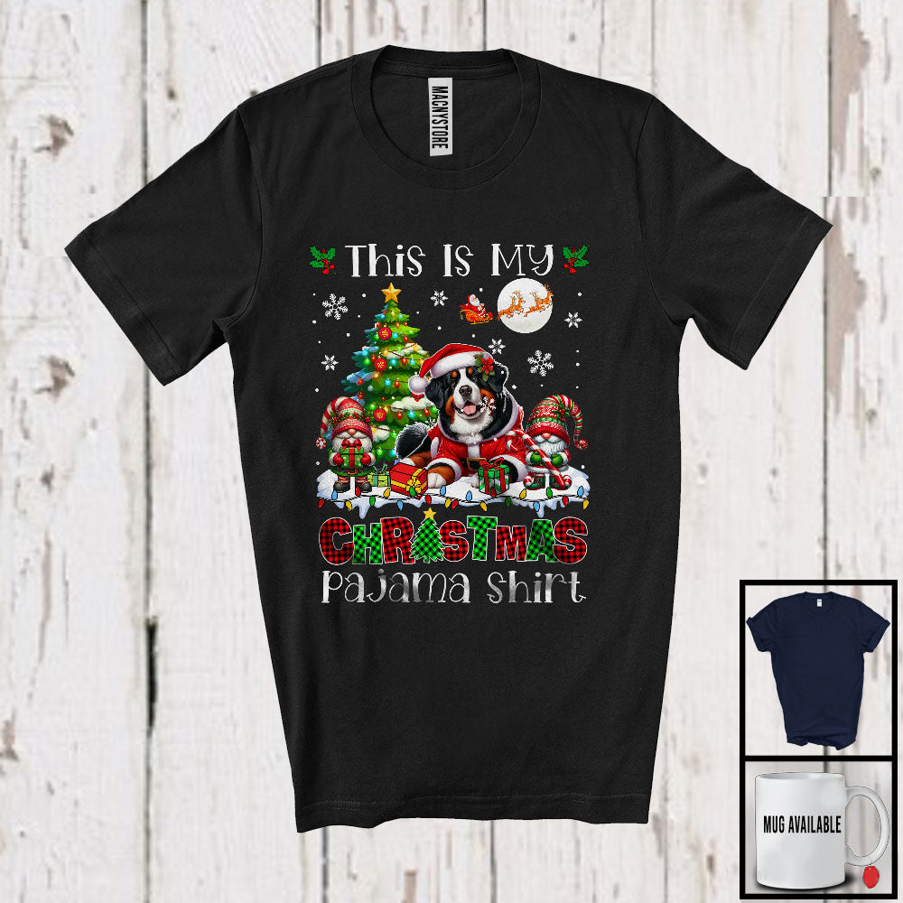 This Is My Christmas Pajama Shirt, Adorable X-mas Santa Bernese Mountain Plaid, Gnome Snowing T-Shirt