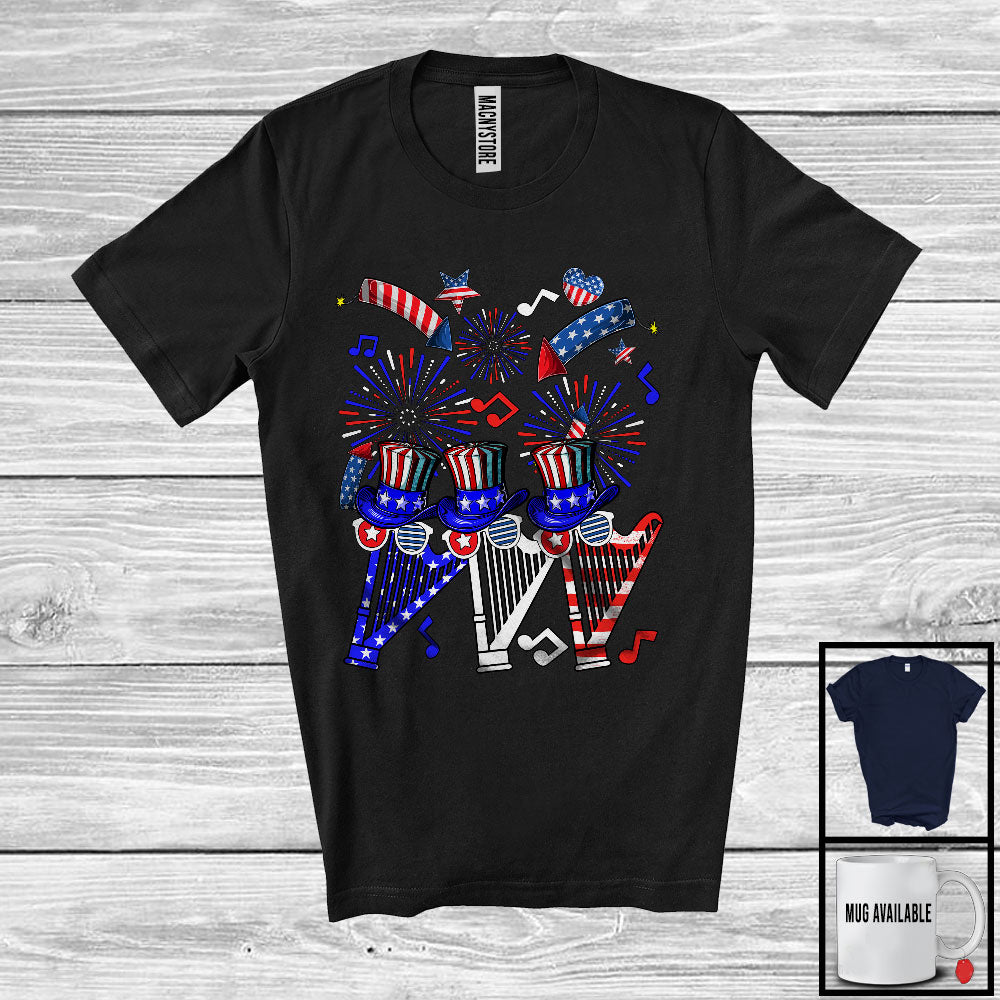 Three American Flag Harp, Amazing 4th Of July Music Instruments Player, Patriotic Group T-Shirt