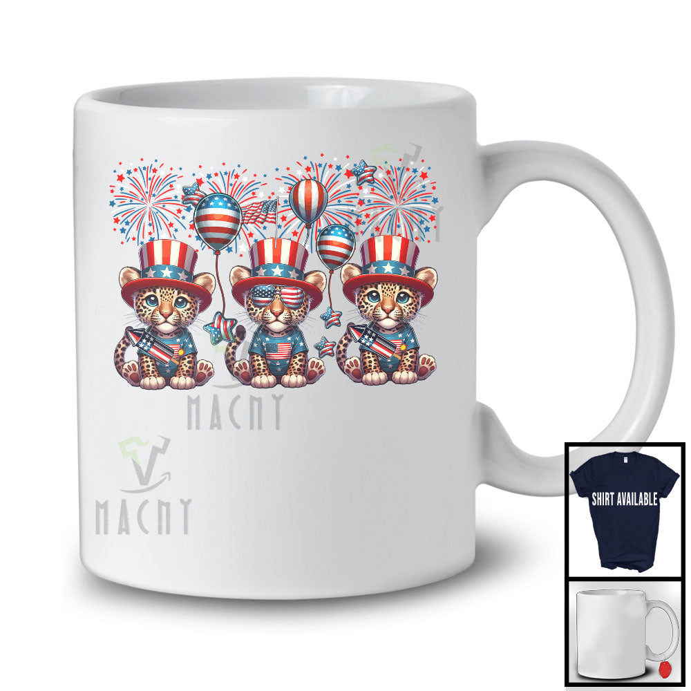Three American Flag Leopard, Adorable 4th Of July Fireworks Patriotic, Wild Animal Lover T-Shirt
