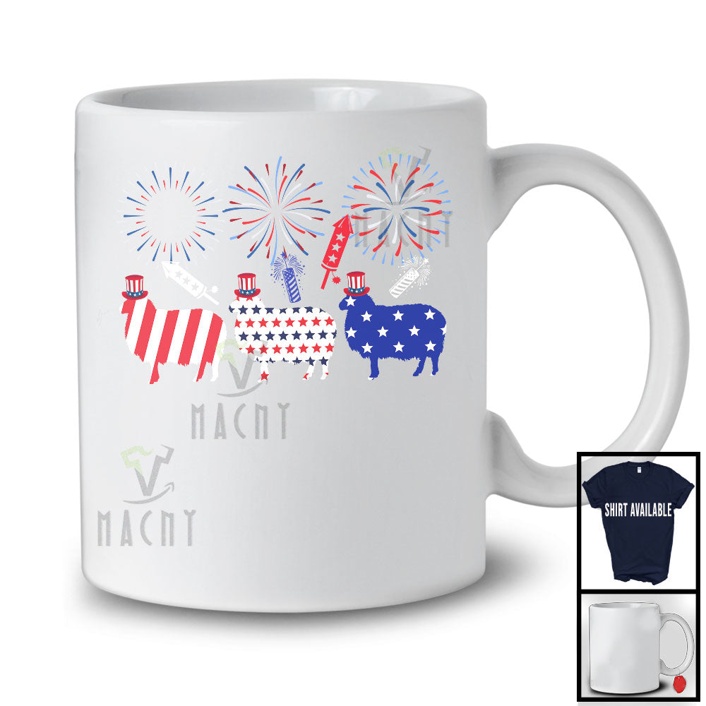 Three American Flag Sheep, Wonderful 4th Of July Fireworks, Farm Animals Farmer Patriotic T-Shirt