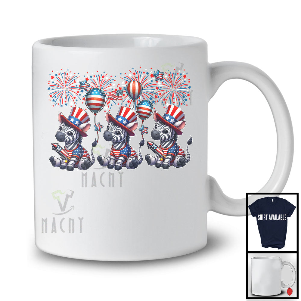 new MacnyStore - Three American Flag Zebra, Adorable 4th Of July Fireworks Patriotic, Wild Animal Lover T-Shirt – Macnystore