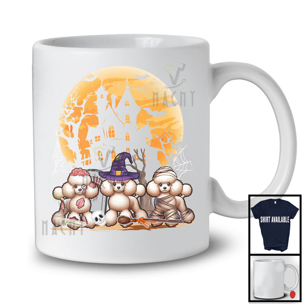 Three Witch Mummy Zombie Poodle, Horror Halloween Costume Moon, Matching Family Group T-Shirt. This cotton t-shirt is a durable staple product with a classic fit. One of the most popular items, it has a relaxed style made for everyday and casual wear.