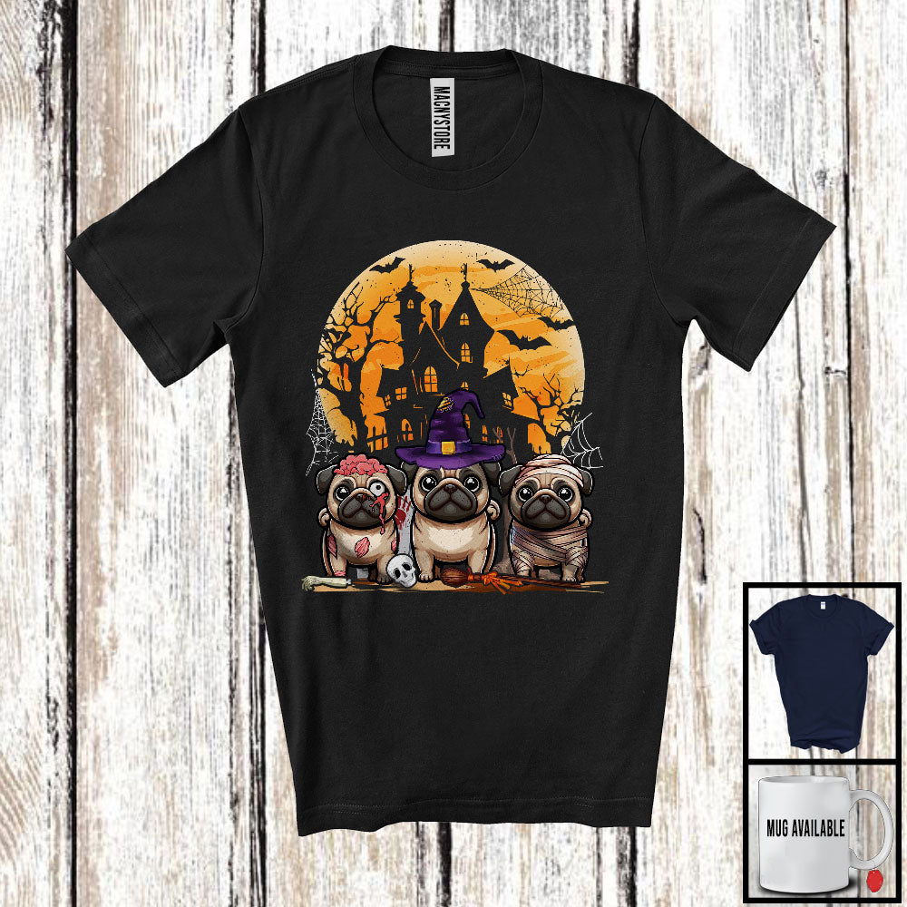 Three Witch Mummy Zombie Pug, Horror Halloween Costume Moon, Matching Family Group T-Shirt