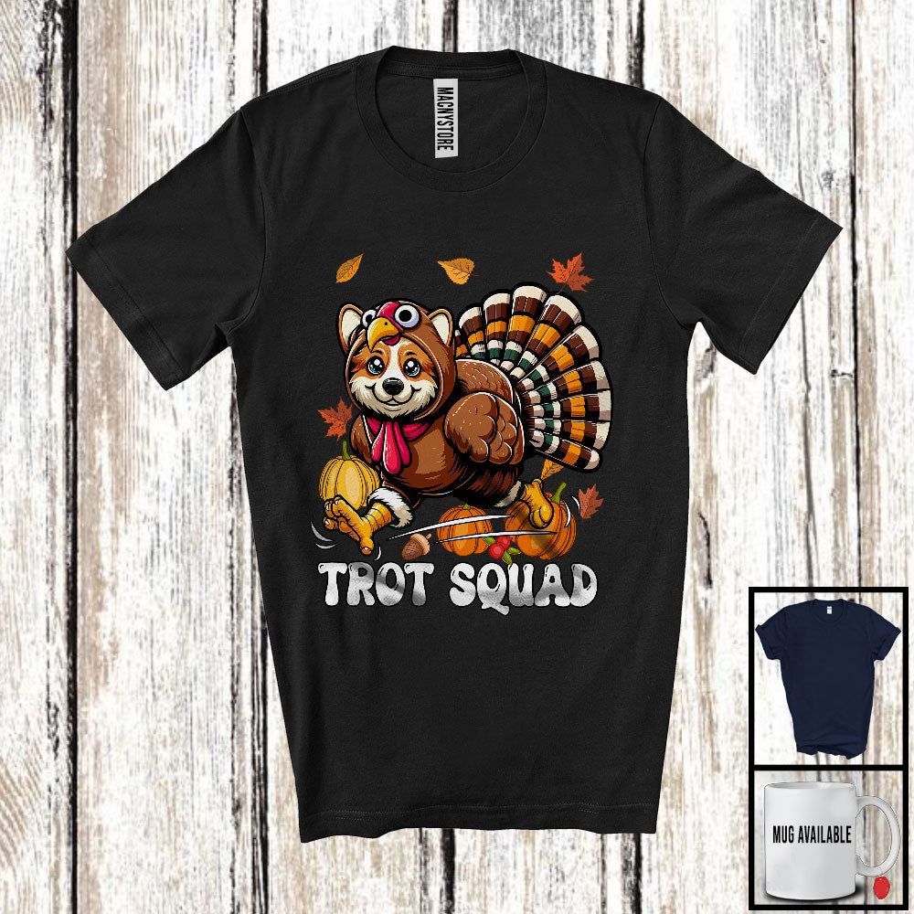 The Trot Squad, Humorous Thanksgiving Turkey Corgi Face, Marathon Running Runner Lover T-Shirt destined to impress, and priced at only $12.95, for a limited time.