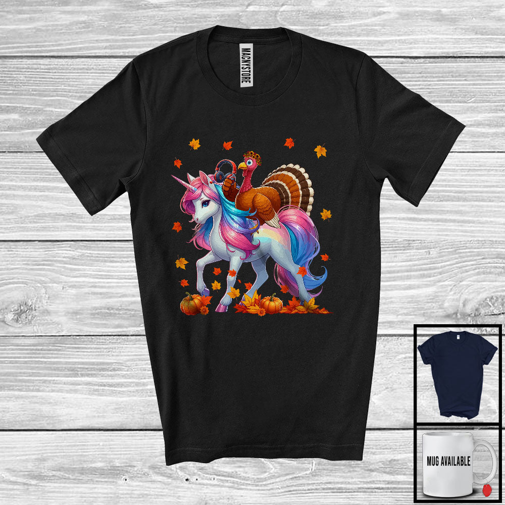 Turkey Dispatcher Riding Unicorn; Wonderful Thanksgiving Fall Leaf Turkey; Jobs Dispatcher Group T-Shirt