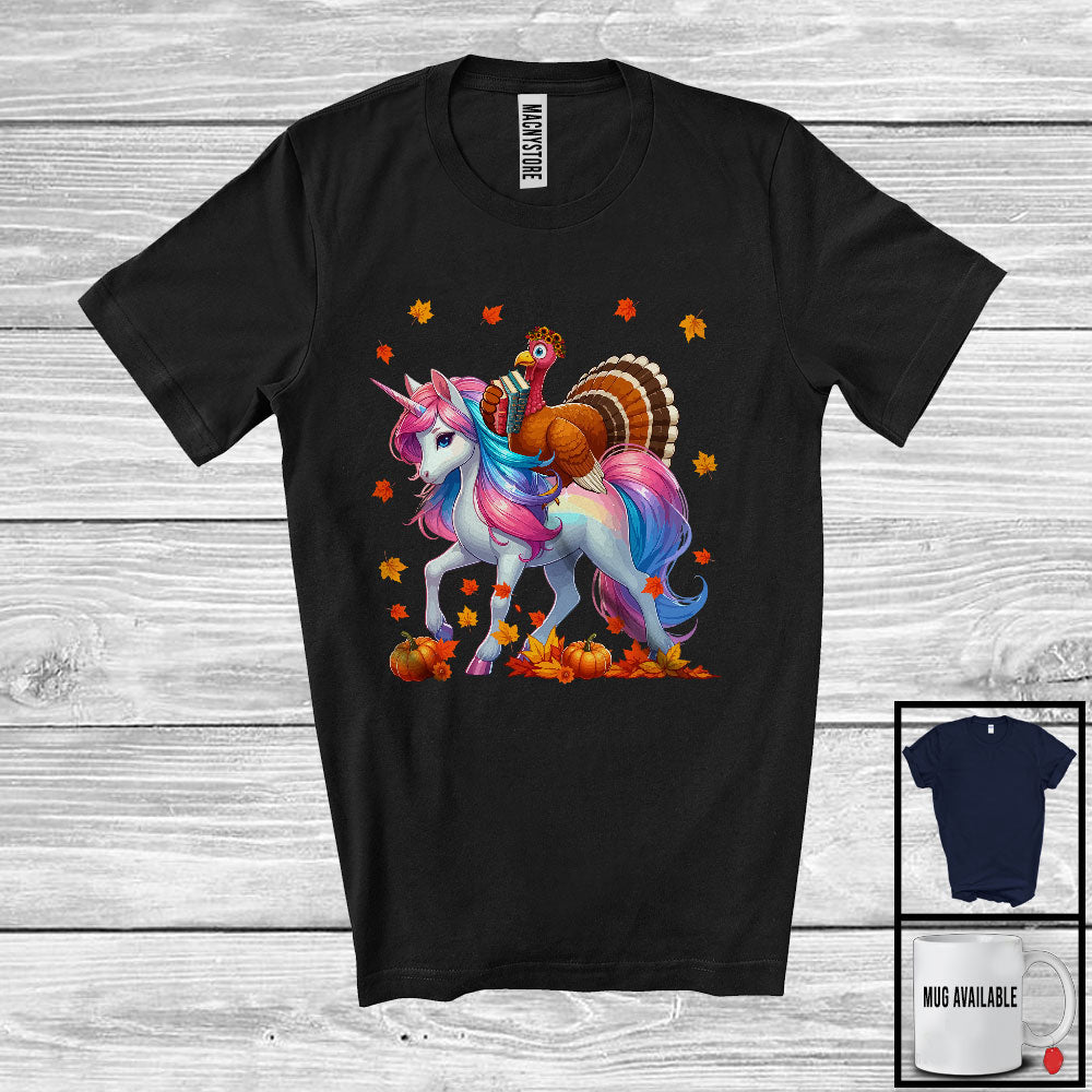 Turkey Librarian Riding Unicorn; Wonderful Thanksgiving Fall Leaf Turkey; Jobs Librarian Group T-Shirt