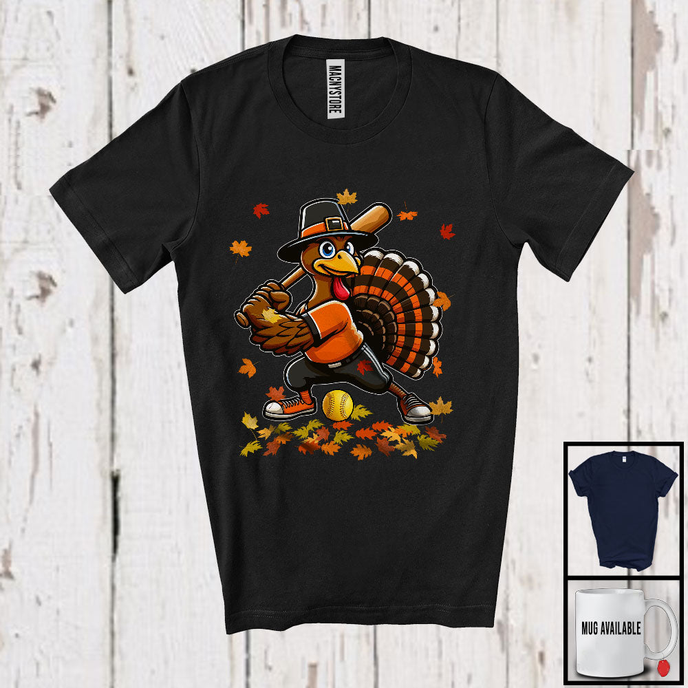 Turkey Playing Softball, Amazing Thanksgiving Sport Player Team, Matching Family Group T-Shirt