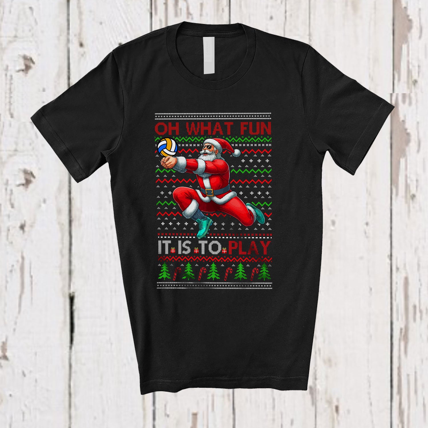 What Fun It Is To Play; Joyful Christmas Santa Playing Volleyball Player; Sweater Sport Team T-Shirt