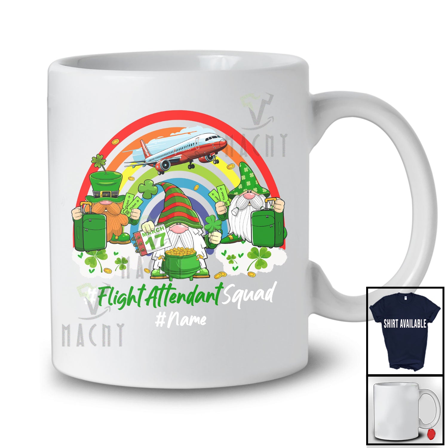 Personalized Custom Name Flight Attendant Squad; Joyful St. Patrick's Day Three Gnomes; Rainbow T-Shirt. This cotton t-shirt is a durable staple product with a classic fit. One of the most popular items, it has a relaxed style made for everyday and casual wear.