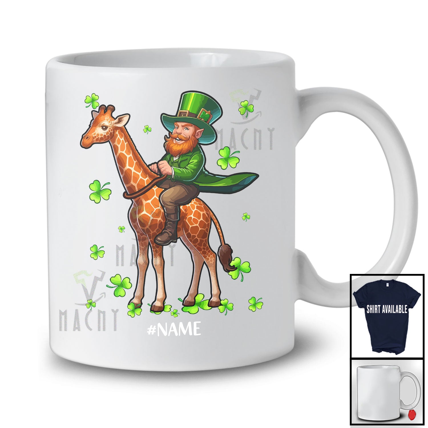 Personalized Custom Name Leprechaun Riding Giraffe; Lovely St. Patrick's Day Shamrocks; Family T-Shirt. This cotton t-shirt is a durable staple product with a classic fit. One of the most popular items, it has a relaxed style made for everyday and casual wear.