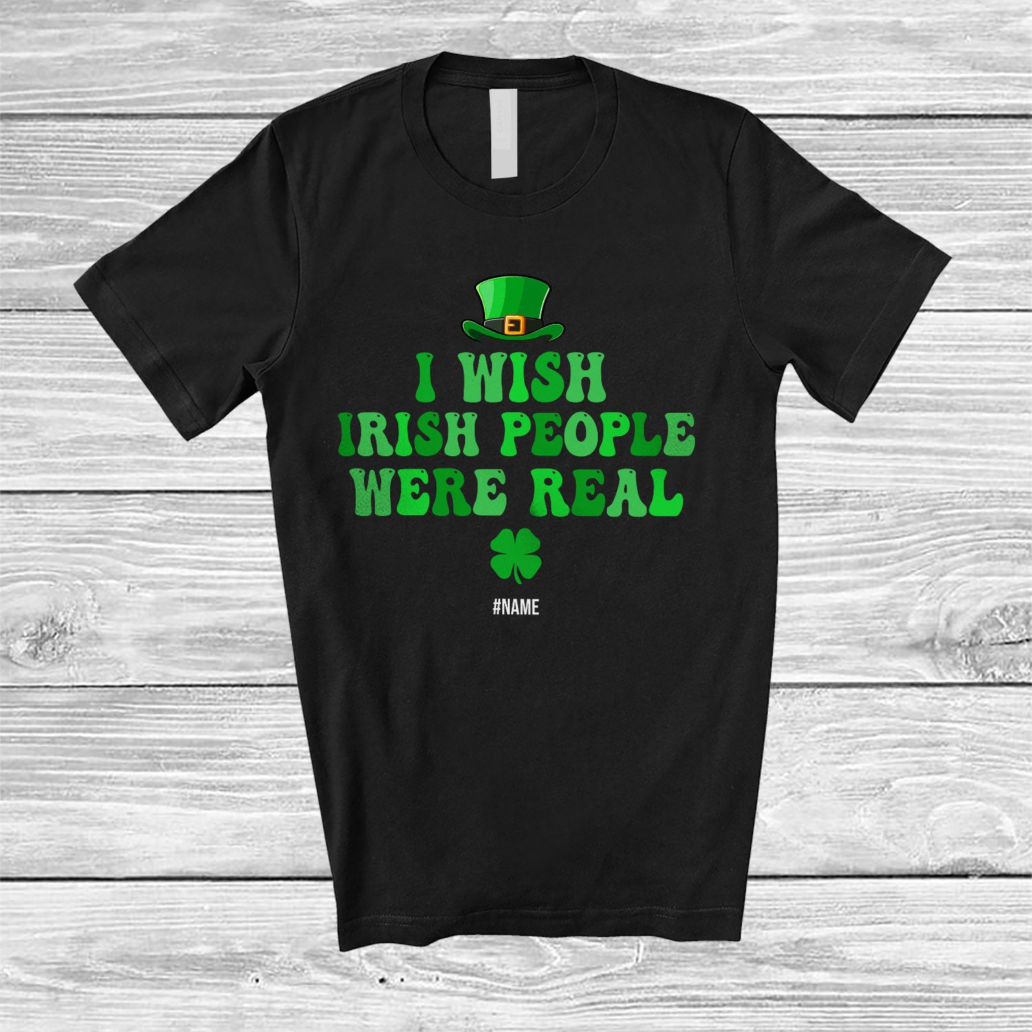 • Personalized Custom Name Wish Irish People Were Real; Humorous St. Patrick's Day Groovy T-Shirt. This cotton t-shirt is a durable staple product with a classic fit. One of the most popular items, it has a relaxed style made for everyday and casual wear.