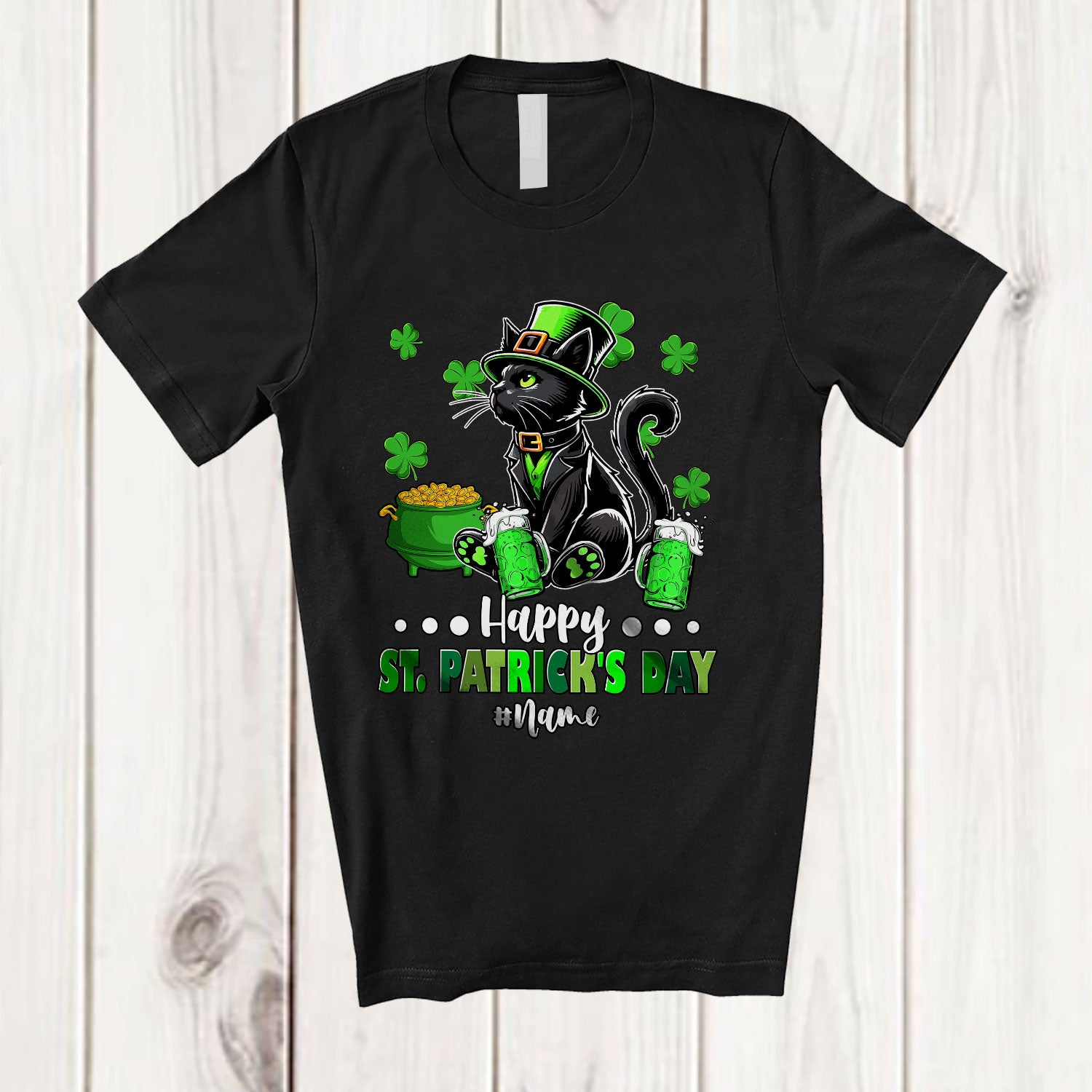 Personalized Happy St. Patrick's Day; Joyful Custom Name Cat Drinking Beer; Drunker T-Shirt