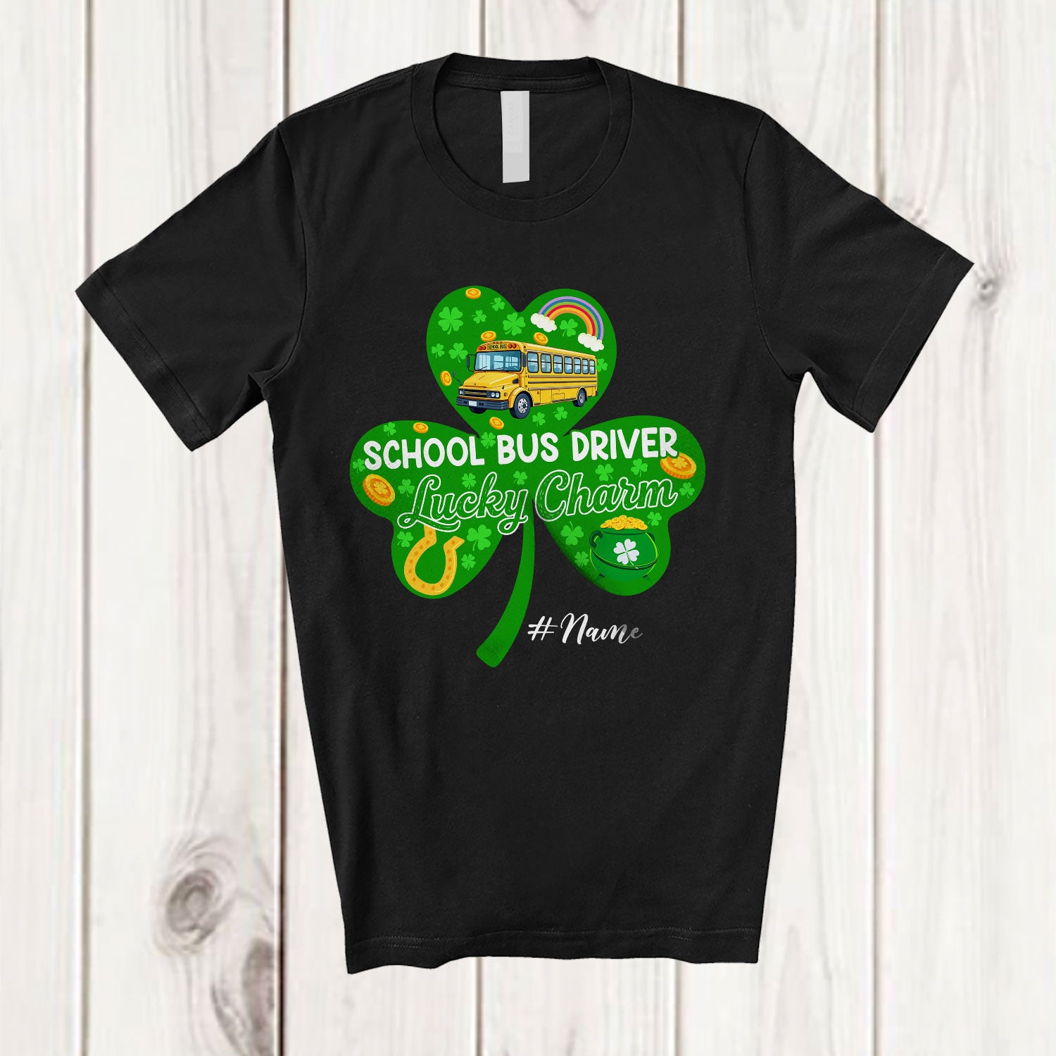 new MacnyStore - Personalized School Bus Driver Lucky Charm; Joyful St. Patrick's Day Custom Name Irish Shamrocks T-Shirt – Macnystore
